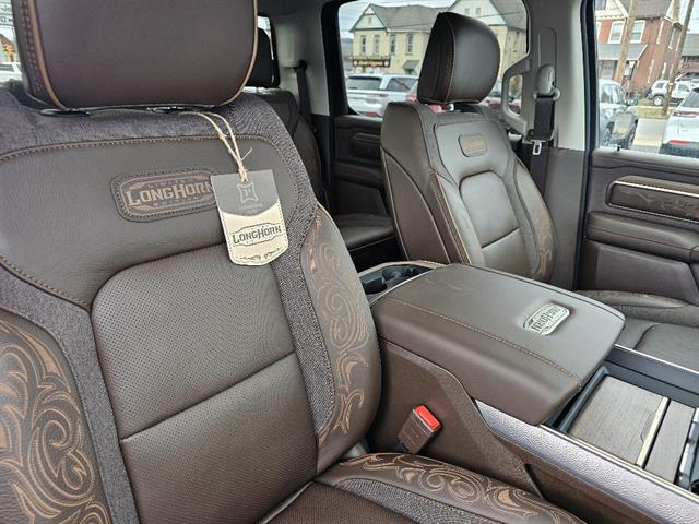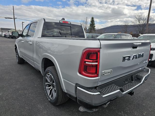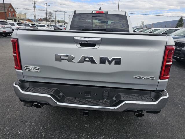 Turn heads in the 2026 RAM 1500 Limited Longhorn Crew Cab in striking Silver — where rugged capability meets premium comfort. Built to work and travel with confidence, this 4WD truck features locking/limited-slip differentials, full stability and traction control, ABS and run-flat tires for all-weather assurance. Slide into luxurious leather heated front seats with multi-way power adjustment, heated leather steering wheel and dual-zone climate controls, plus premium sound with subwoofer for every drive. Convenience is effortless with keyless entry, remote start with climate control and automatic headlights, while robust safety includes a full suite of airbags and a vehicle stability system. Backed by a 36‑month/36,000‑mile basic warranty, 120‑month/100,000‑mile powertrain coverage and 60‑month rust protection — come test drive the Longhorn today and feel the difference.